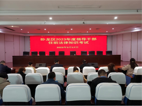 卧龙区历来注重落实领导干部学法用法制度,将任前法律知识考试成绩作为干部正式任职的重要条件,3月17日,在新提拔调整干部任前集体谈话后,在市第一人民医院会议室组织了干部任前法律知识考试。以考促学,着力提高卫生系统领导干部法治意识、法治思维,也督促领导干部不断加强学习,及时更新理论知识,达到以考促学的目的。